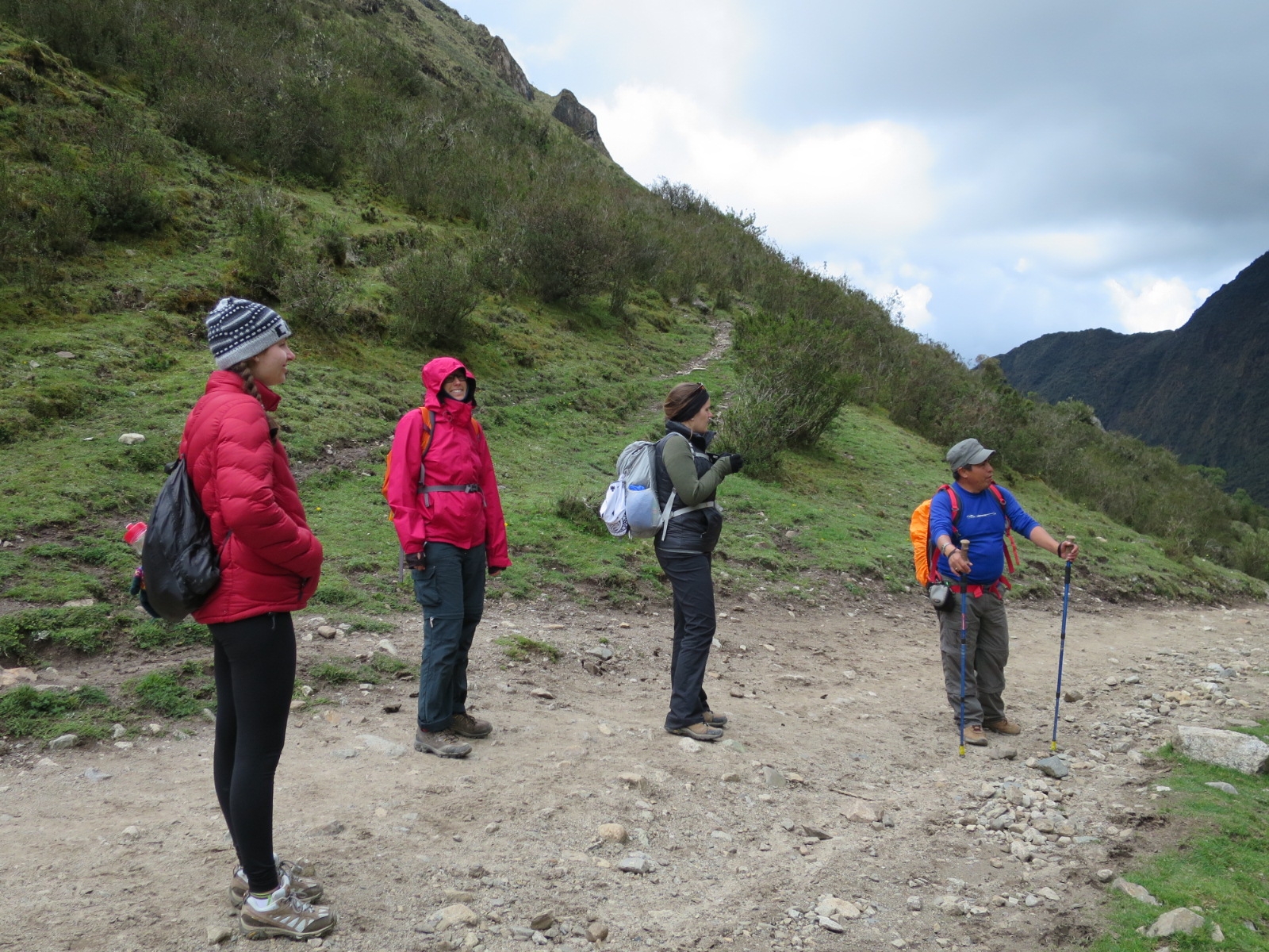 Die erste Etappe war relativ entspannt, nur wenige Stunden Wanderung zum ersten Camp. Das einzig beschwerliche war die Höhe mit über 4000 m, aber da wir davor schon einige Tage am Titicacasee und in Cusco verbracht hatten, haben wir das auch ganz gut geschafft. Etwas ungemütlich war dann das kalte, regnerische Wetter. Ein sehr angenehmer Service war, dass unsere Zelte bei unserer Ankunft schon aufgebaut waren. Die Mulis und ihre Begleiter sind mit dem Gepäck immer vorausgeeilt und haben uns langsame Wandersleute schon empfangen.